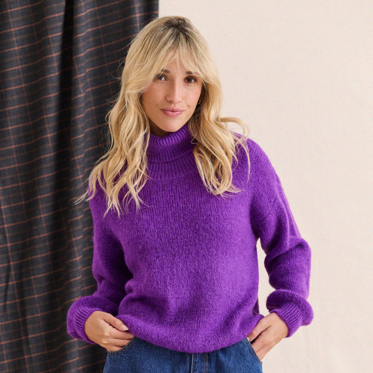 Pull Milo violet Pièce originale, imaginée et développée à Paris par Laure, Lulu et Nora. Découvrez notre Studio de Création.
